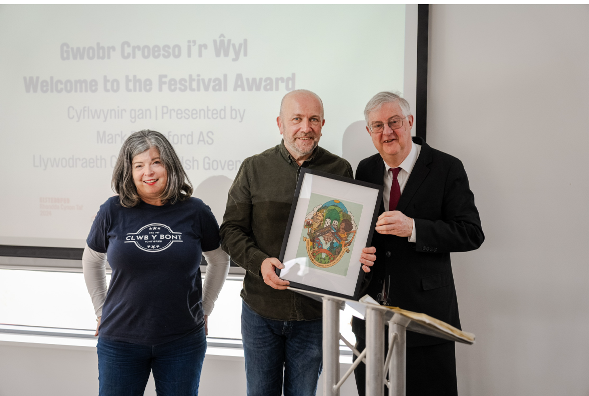 • Croeso i’r ŵyl award: a chance for those who live outside the area to nominate a business or company that showed a special welcome to Eisteddfod visitors during festival week. Presented by Mark Drakeford, Cabinet Secretary for Finance and Welsh Language.